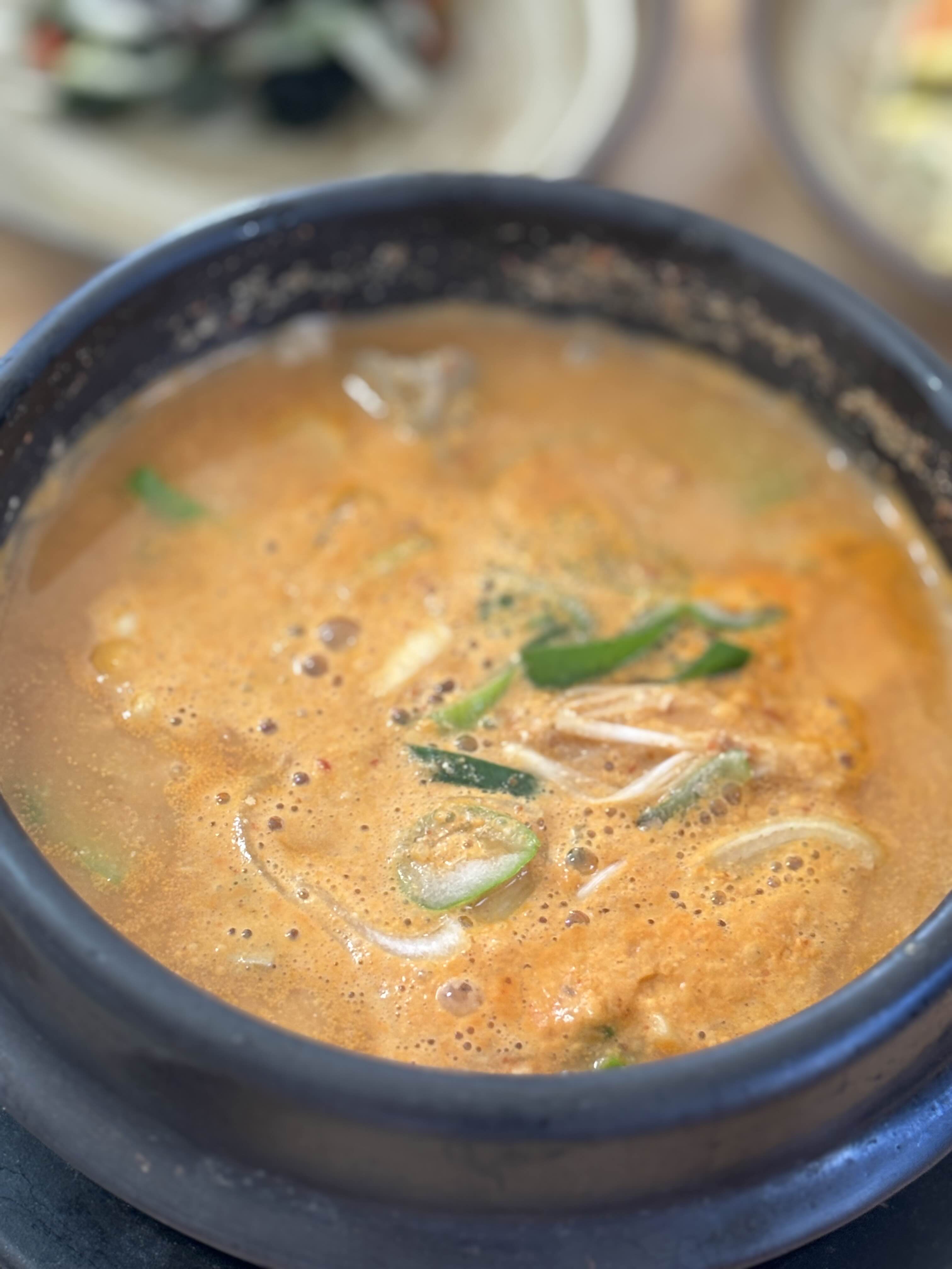 보글보글. 흑두부와 청국장 바지락이 아주 맛있습니다.